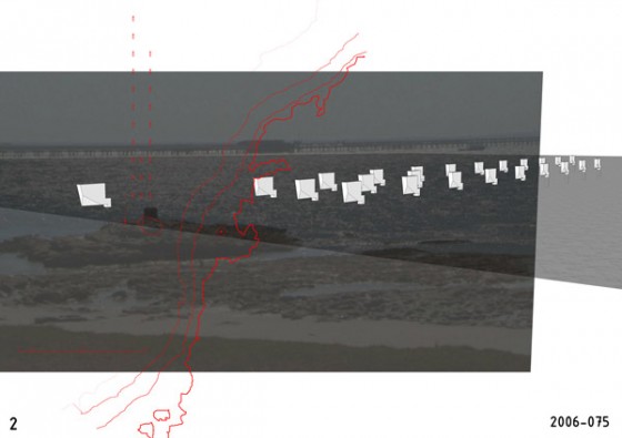 The competition entry provided a memorable monument to Captain Cook by honouring not only his voyage but also his position relative to the 3 subsequent fleets that followed his lead. The concrete prowes are composed to be revealed at low tide and to appear more like tombstones at high tide. Navigational lights to each make them visible from a distance.
