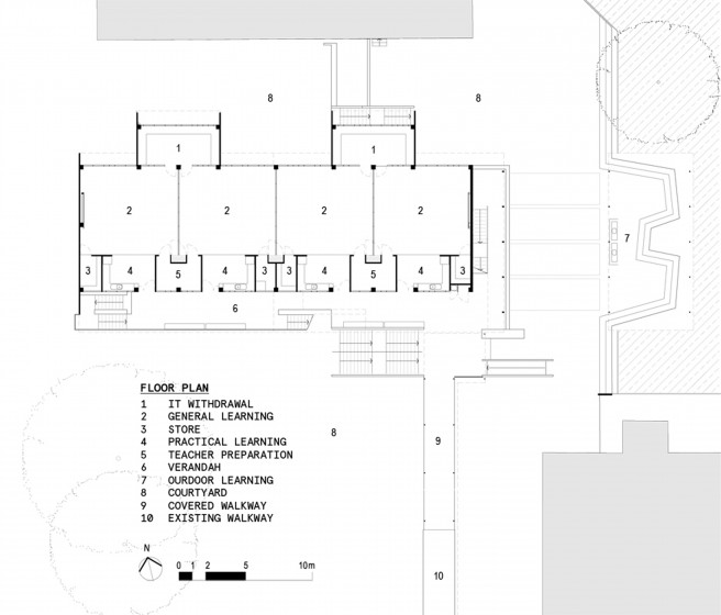 New 8 room general learning building over 3 levels. Concrete structure with steel secondary structure and fibre cement cladding externally and internally.